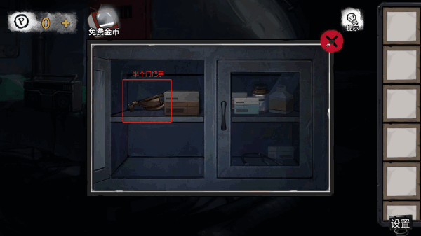 房(fang)间一:治疗室挪开左上角的药品盒,得到【半个门把手】1。