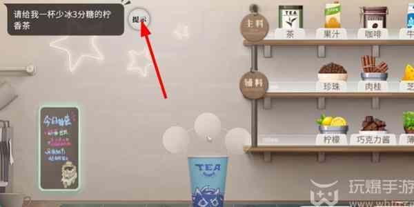 2、接着就需要点击左上角的提示开始(shi)制作(zhizuo)饮料。