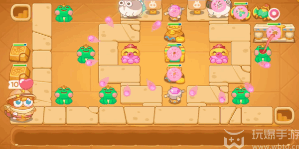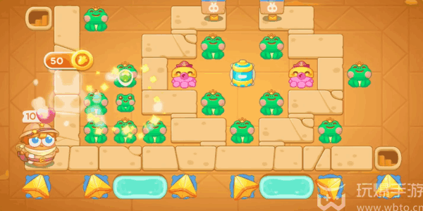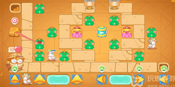 保卫萝卜4法老归来第110关通关攻略(Raiders):1、先建造上两个青蛙,把其(qi)中亿款青蛙进行升级(ji),清理障碍物即可。