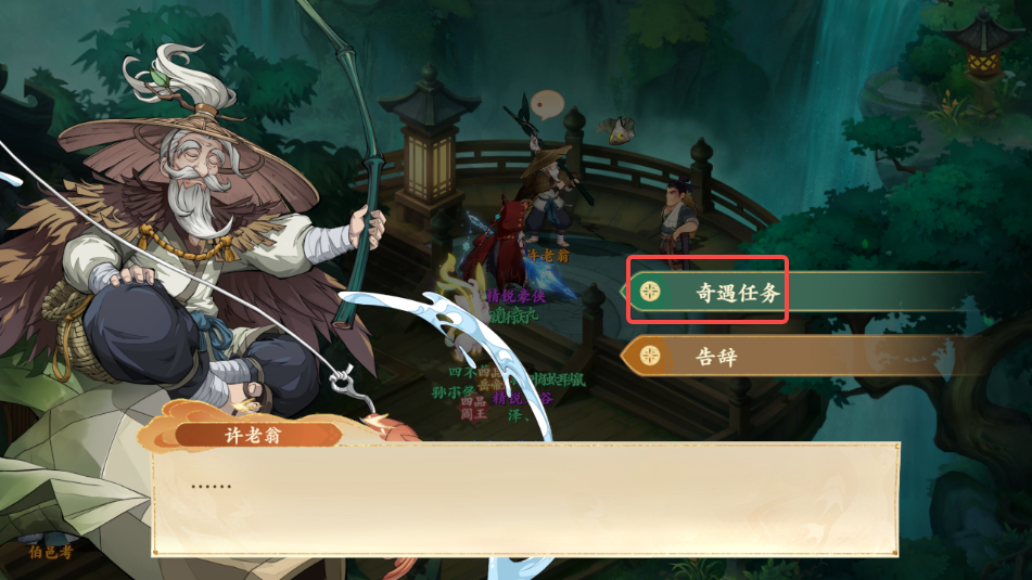 2、前往(go to)垂钓仙境(xianjing)如图所示处与许老翁对(dui)话(hua)
