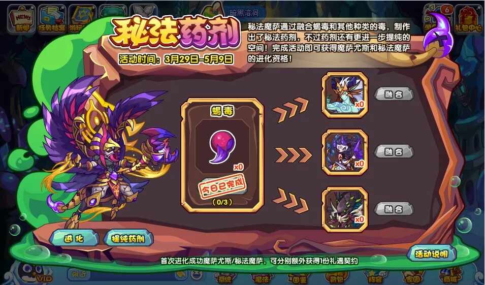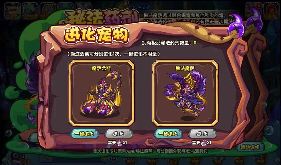 进化魔萨尤斯和秘法魔萨都需(xu)要极品秘法药剂。小洛克们快去提纯药剂吧!