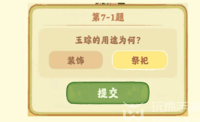 桃源深处有人家鉴玉识宝第七关答案(daan):1、玉琮的用途为何?