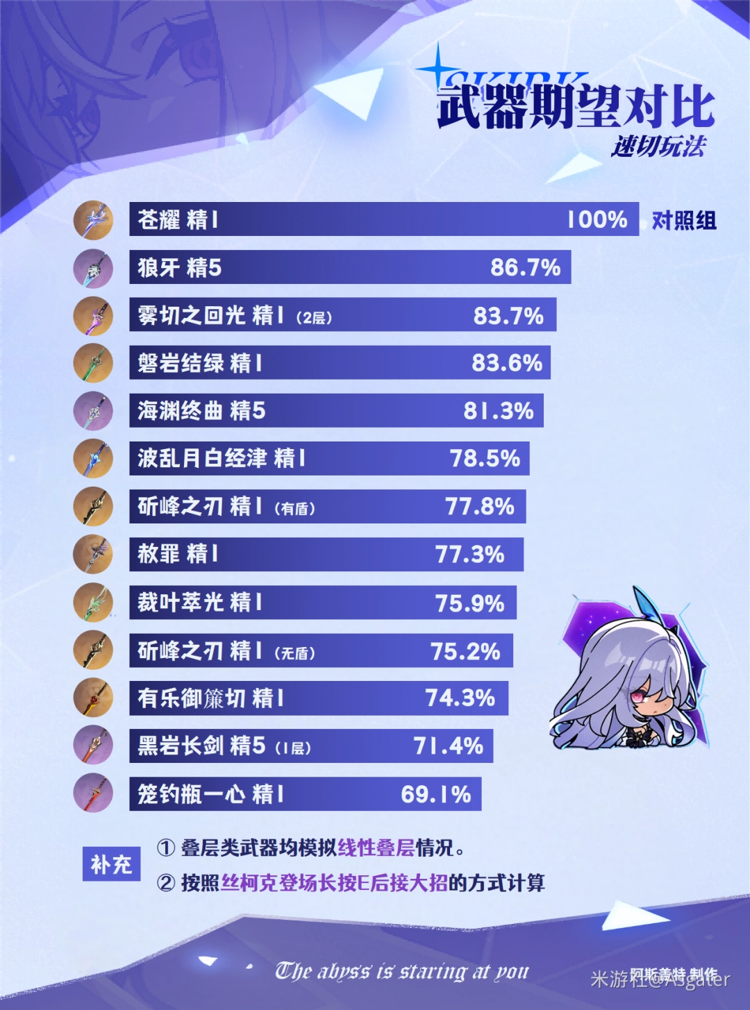 *選擇顺序:苍耀>波乱(站场)>雾切/磐岩>有乐(站场)/斫峰/赦罪>裁叶