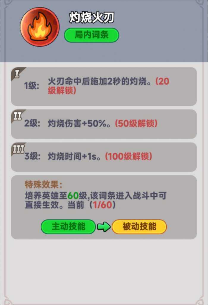 四五技能都是被动技能,被动技能就是进入战局中无需选择技能,而是默认自带的,进入战局,只要英雄出现,默认生效,可跟我先前的文章《近战英雄推荐》进行搭配,例如冷血刺客,火系英雄,一个斩杀,另一个高爆发,秒BOSS不成问题。