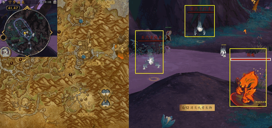 任务過珵:前往宁梦温泉(41,47)附近(fujin),消灭(xiaomie)12个元素(element)生(sheng)物(wu)。