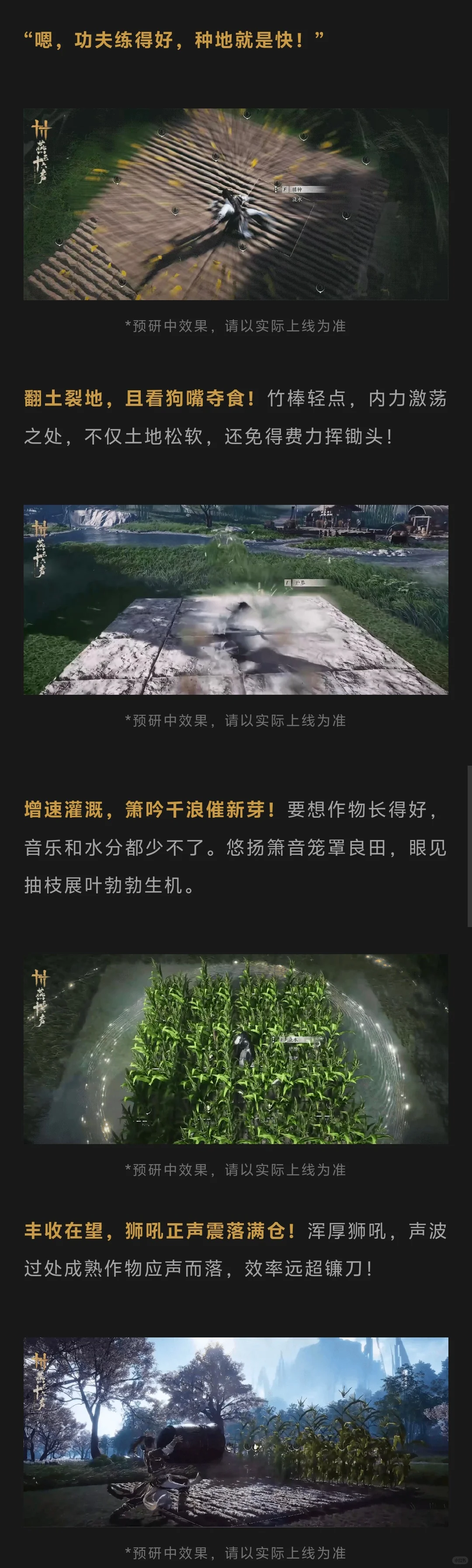 4、收割:使用“狮吼功”奇术進行收割,作物会自动进(jin)入(ru)背包。