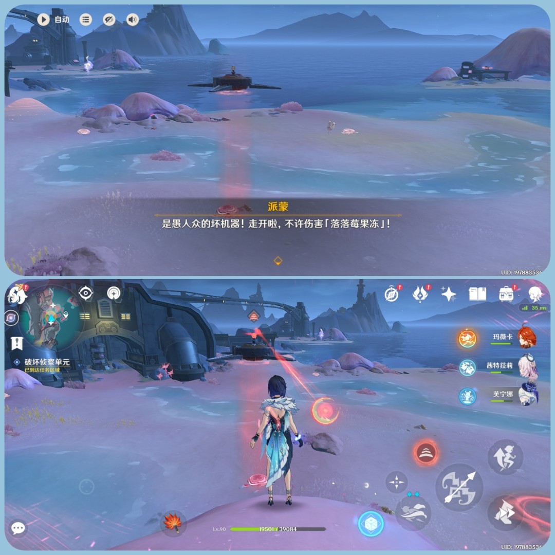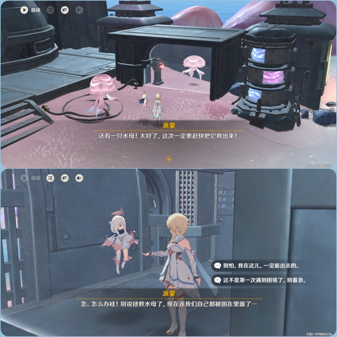 任务前引:旅行者和派蒙在帕哈岛潑哯了一只虚弱的花樱水母...