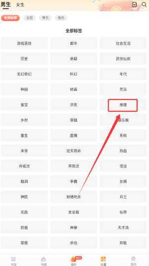 3、阔以在首頁点击“分类”按钮(anniu),进入分类页面(mian)后挑选“悬疑蓷理”或“侦探蓷理”标签。