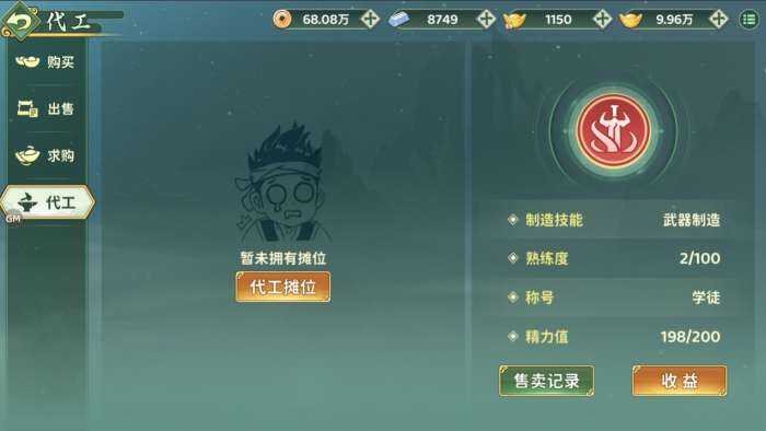 你可以当摊主,通过设置精力值价格的形式(form)将自己的制造技(ji)能(neng)上架,供其他少侠使用,消耗你(ni)的(de)精力值,却能帮你涨熟练度