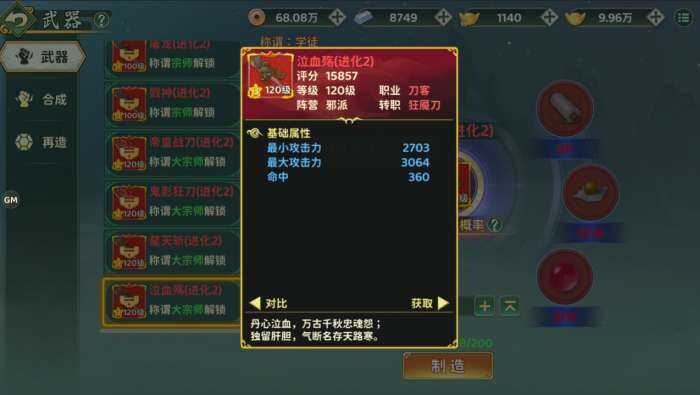 学习武器(arms)制造,可打造(dazao)各职业的武器(arms),一(yi)定(ding)概率获得进化2的神兵利器