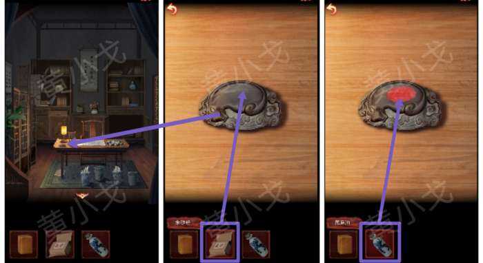 12.点击桌子上的公文,盖上【蘸了印泥的印章】;打开暗格,获得【铜钥匙(yuechi)】