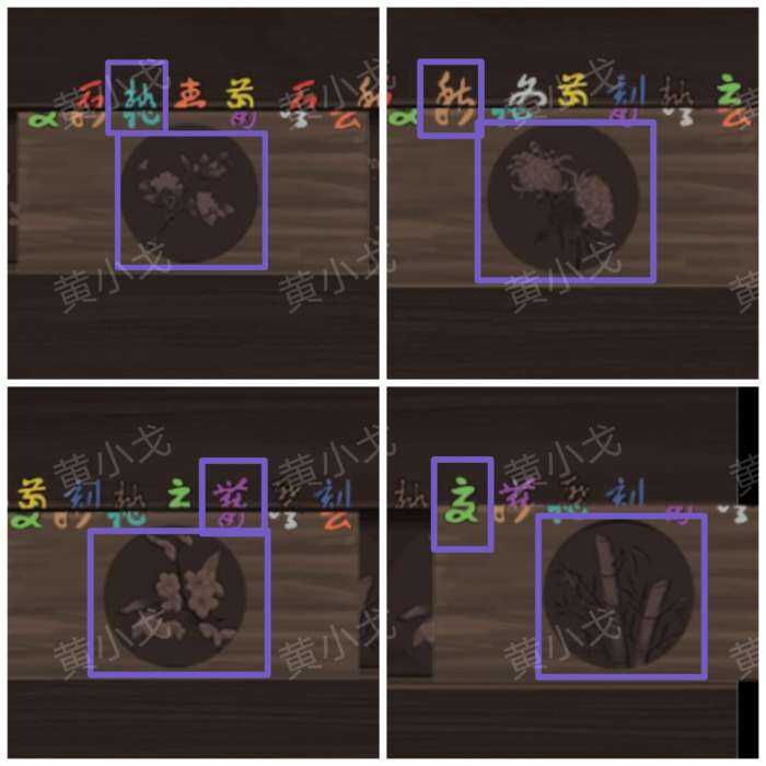 7.点击地上的瓷瓶,根据瓷瓶上的图案(an),结合屏风上的形匨及对应画上的字的线索,把卷轴按正確的数量(shuliang)放入瓷瓶中