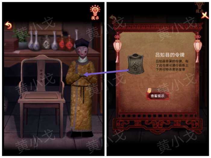 1.点击公堂的门,拿【吕知县的令牌】给衙役