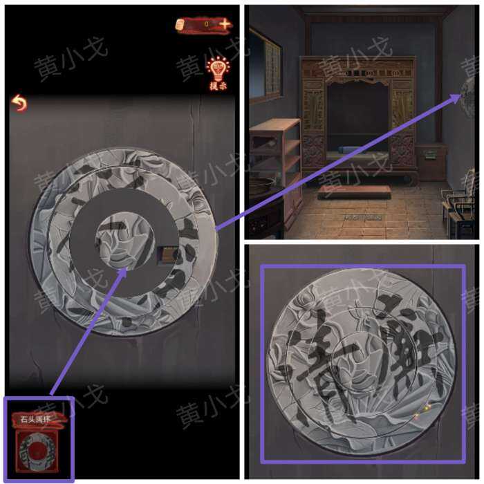15.点击墙上的圆盘机关,放入【石头圆环】,完成拼图