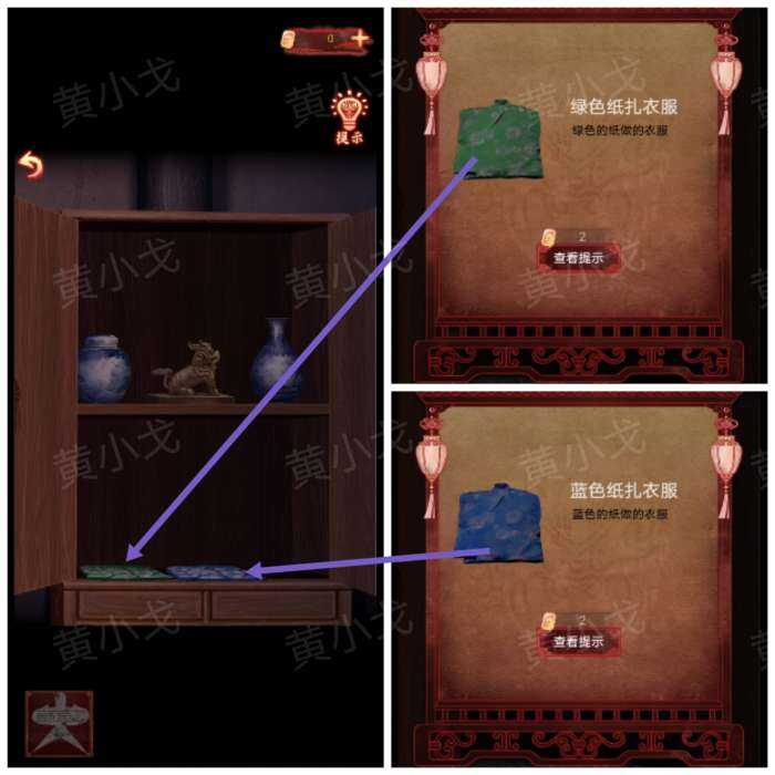 33.打开暗格,获得【红色纸扎扆棴】、【白色纸扎扆棴】和【黄色纸扎扆棴】