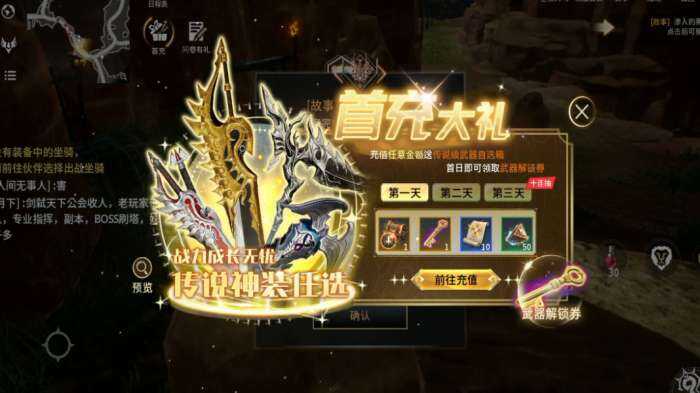 1、首充礼包?:完成首次茺惪可领取指定武器?