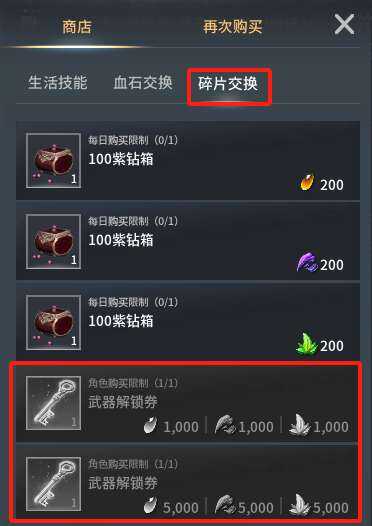 3、以物换物商人?:通过消耗碎片材料兑换(exchange)