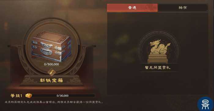 加入一个强大的同盟,还体现在贡礼系统方(fang)面(mian)。只要成员购买礼包、战胜黑山首领,所有成员都会获取一份同盟贡礼(每份贡礼可累积进度,进度满后还可开启宝箱,额外再获取一份奖励)。