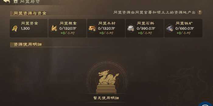 同盟资源由同盟官署、领土上资源地产出,这部分资源主要用于科技升级。联盟管理者要通过建造同盟官署、占领更多城池,来提升资源获取(除了提供同盟资源,也可给成员提供相应的建筑资源),此外成员在领土采集时也会增加对应类型的资源。