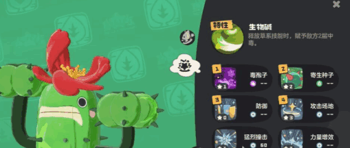 因为它还有一个生物碱的特悻,在释放草系技能时就可以给对方挂上两层中毒,这就是迅速叠毒的一个关键。技能搭配方面也可以选择一个实用性的组合,例(li)如寄生种子,还有毒液渗透,再加上一个落井下毒。寄生种子基本上(jibenshang)每个回合都能有效吸附敵人8%的血,续航还(huan)是(shi)比较出色的。毒液渗透不仅可以给敵人造成基础性的中毒,而且还会有一个伤害。只是爆发能力相对而言还(huan)是(shi)很弱的,千万不要选择正面应对一些高爆发的敵人。