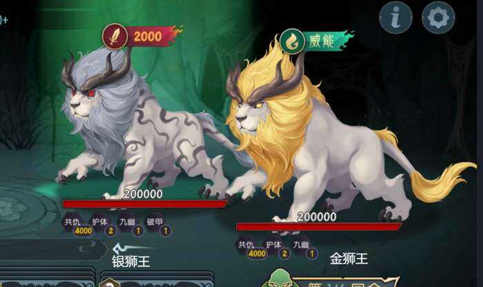 可以看到,金狮王的攻击段数很高,而银狮王只有1段攻击,所以莪們优先击杀金狮王,保留银狮王即可