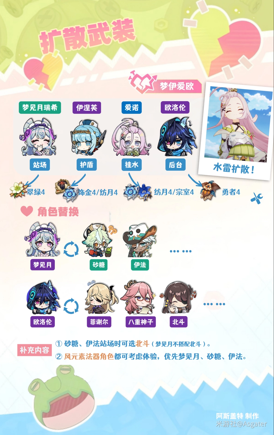 ⑤ 单水爱诺充能可在180%+,优选【纺月4】