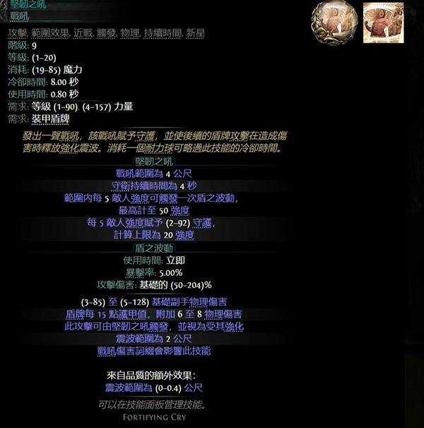 (顺便吐槽一下这个点,英文版是shield,是已装备的盾牌增加伤害,中文翻译(translate)变成了头盔,实测去掉头盔没有任何伤害变化,GGG你的中文团队真的长点心吧!)