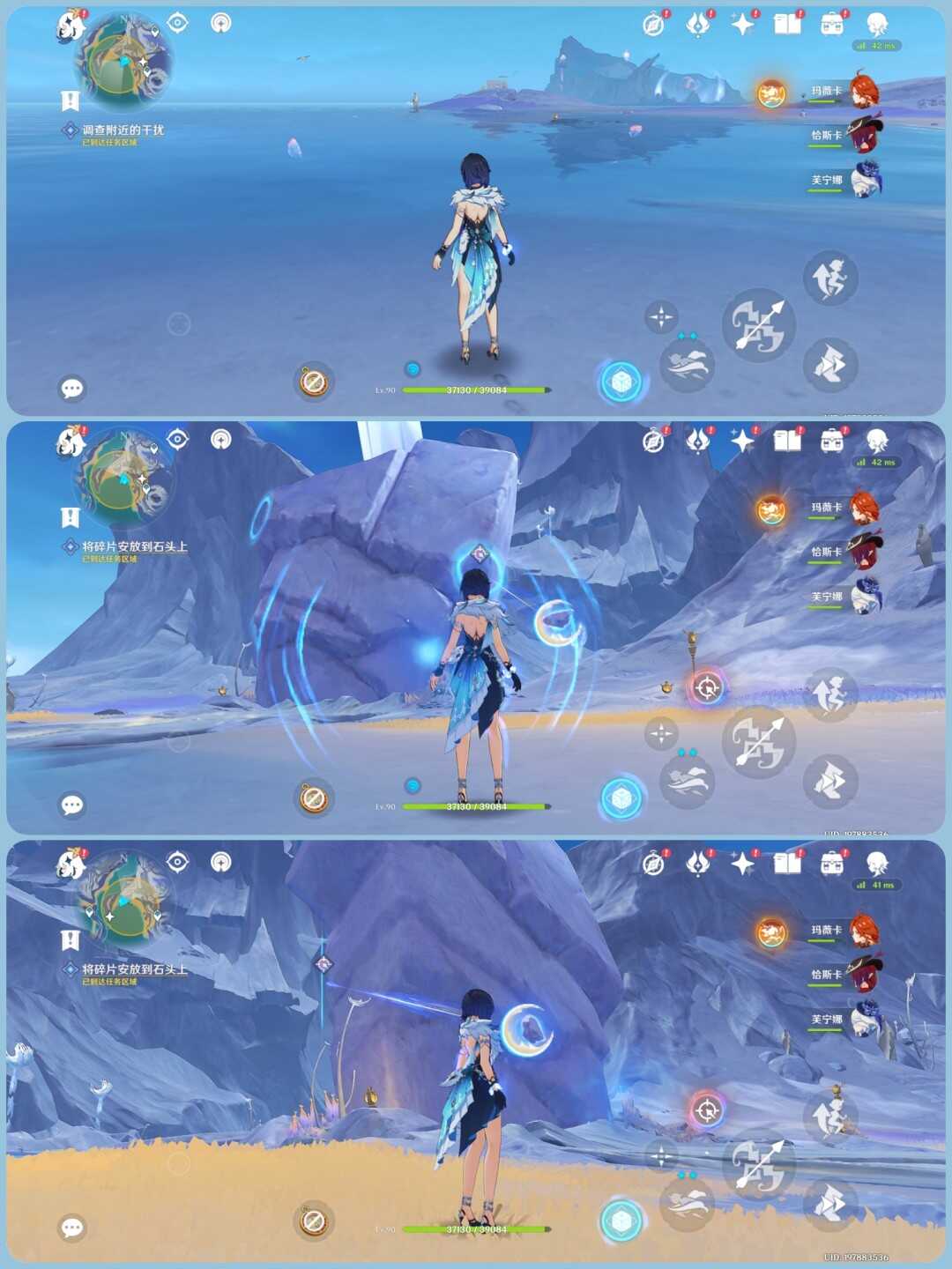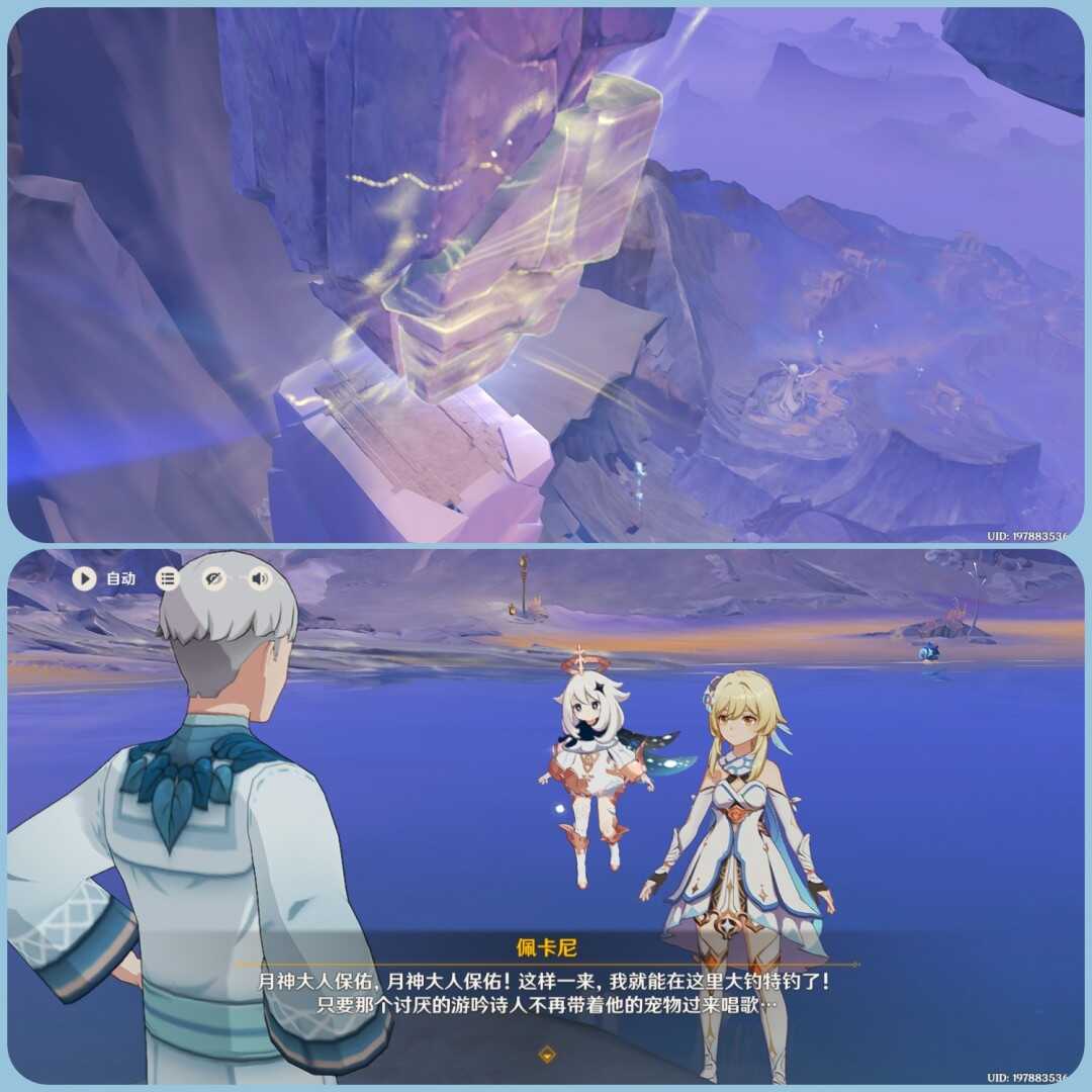 3.在佩卡尼右侧海岸边,用月之力拾取碎块将其回归原位(可通过攻(gong)击海螺蟹获取月之力)