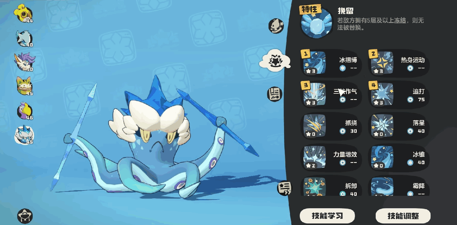 另外有部分首领其实会存(cun)在(zai)护盾或者是减伤的机制,玩家这时候就需要破防。涉及到的首领比如是蹦蹦果,他在第1阶段就会跃起砸向玩家落点的时候会出现红色(red)的圆圈,玩家如果在这个圆圈当中就要及时的离(li)开,并且玩家还需要保护(hu)好自己,要说蹦蹦果它会自我修复。此时玩家还可以尝试使用星星魔法来将其打断,一旦到了第二阶段的时候,玩家可以尝试使用冰系技能比如玩家在选择精灵的时候,这时候可以尝试选择冰钻布鲁斯。