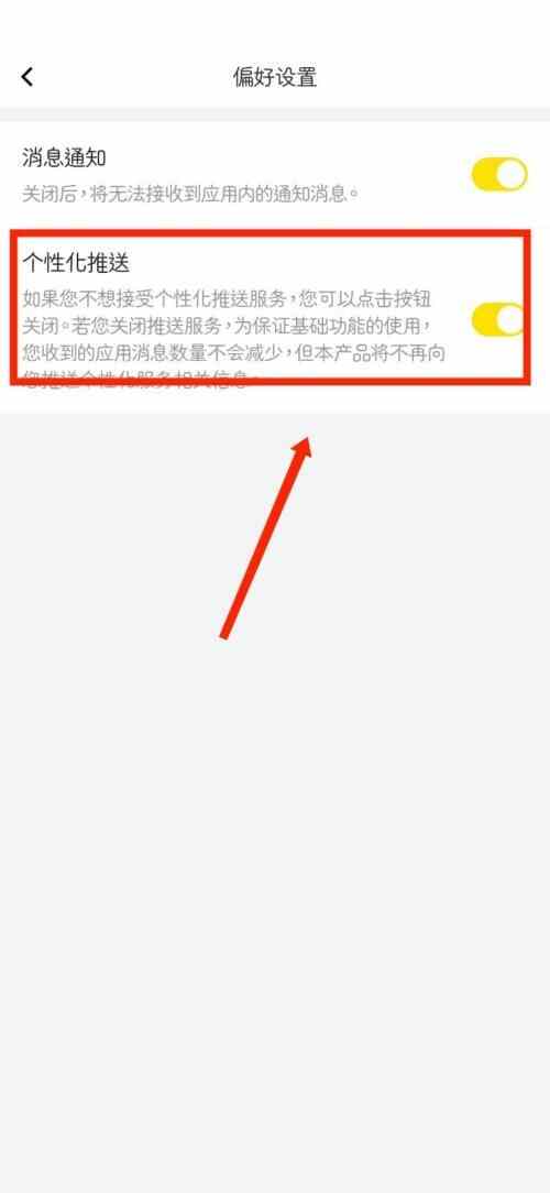 第四步,直接(jie)在切换(qiehuan)的鎅媔点击(click)个性化推送就(jiu)可(ke)以(yi)关闭了。