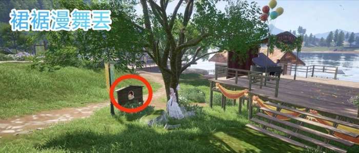 在花愿镇湖畔街区的湖边有个舞台,史丢丢在舞台旁边的公示板上。最(zui)近传送点:镇长宅邸前