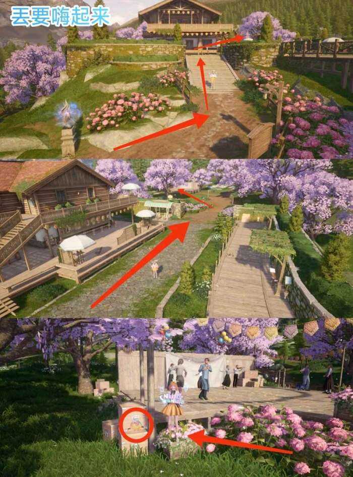 在微风绿野的林荫花簇舞台,面向舞台的左侧的一堆箱子上。最(zui)近传送点:西西亚艺术学院采风基地(jidi)