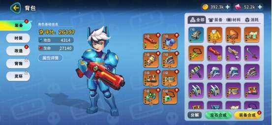 游戏的主要免费养成系统,战力提升的重要来源,提升品质需要大量装备,后期套装打造(zao)的基础。S级装备稀有度高,掉率低,装备缺口可通过抽奖获得。