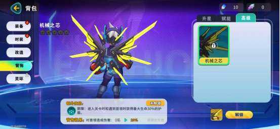 升星提升角色基础属性,赋能增强角色、宠物伤害(hai),高级解锁背饰外观、养成背饰效果。