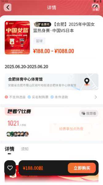 3、以【合肥】2025年中国女篮热身赛·中国VS日本为例子。