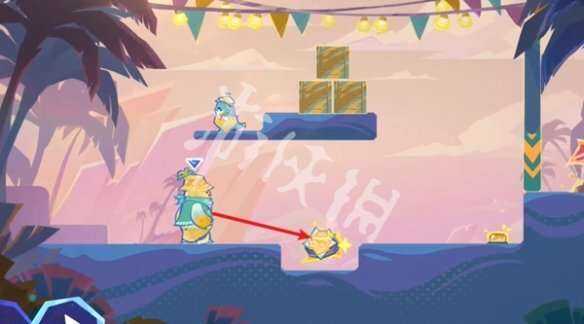 小龙站在大胖的身上,跳上平台后踩住开关,石门降下,让大胖从下方通(tong)过(guo)。