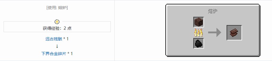 下界合金碎片是通过(adopt)烧炼远古残骸获(huo)得(de)的,也可在下界的堡垒遗迹中找到(turn up),用于合成(hecheng)下界合金锭。