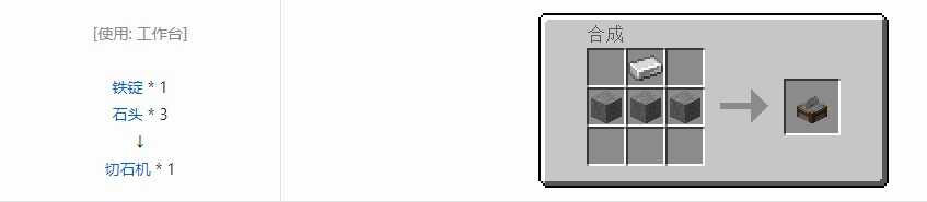 切石机用于制造(manufacture)与石头有关的方块并可作为(zuowei)工作台的廉价替代品,因为(because)切石机的所有(suoyou)合成配方都只要一款原料。