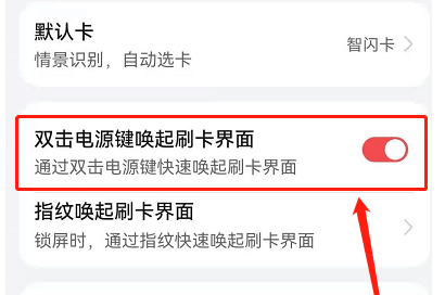4、最后在此找到双击电源键唤起刷卡界面点击(click)右侧按钮即可关闭。