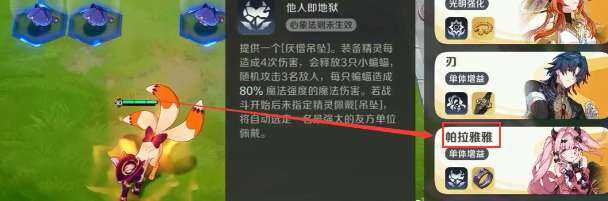 推荐(recommend)以帕拉雅雅作(zuo)为阵容核心辅助。她不仅能提供强力的单体强化,还能为队伍(duiwu)装备“厌憎吊坠”专属装备。装备此道具的小精灵每累计造成(cause)四次伤害,即可(jike)召唤三只蝙蝠随机攻击敌人,每只蝙蝠造成(cause)施法者80%基础(chu)法术强度的伤害,有效弥补黑暗体系在爆发输出上的不足。