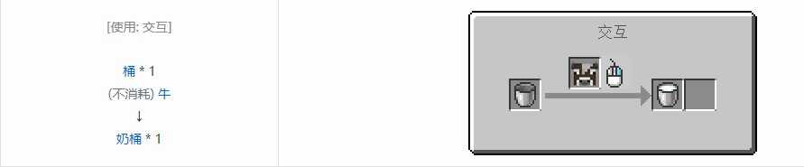 奶桶是一种(A sort of)通过牛、哞菇或山羊来收集的物品。它也是原版 Minecraft 中营养价值最低的喰粅,所增加(Increase)的饥饿值和饱和度都为 0。
