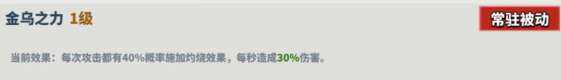 描述:每次攻击都有40%概(gai)率(lv)施加灼烧效果,每秒造成30%伤害。