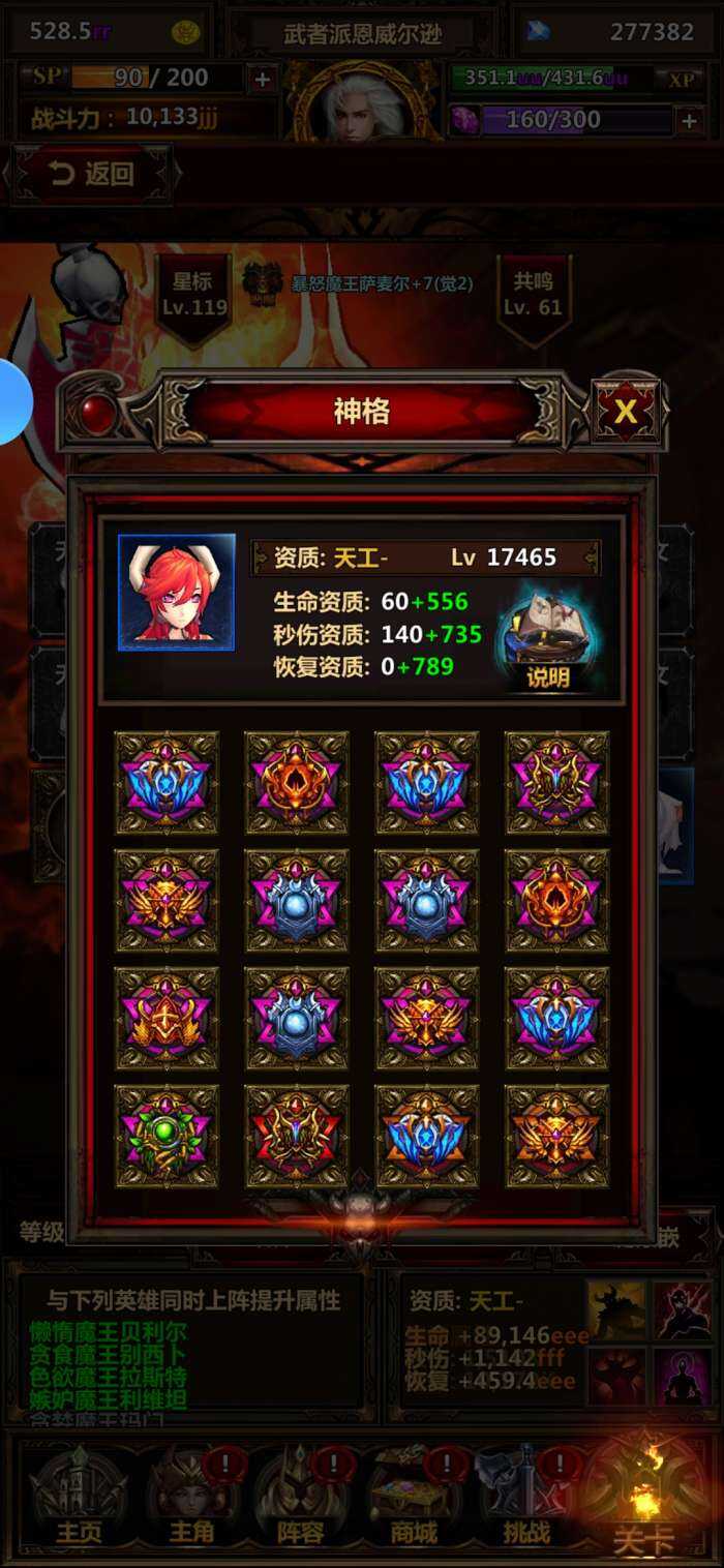 神格点进去就可以(can)看到哪个阶段可以开(kai)启,刷新了一随机增加三(san)种属(shu)性(攻击,生命,恢复),因为这个也會相应(xiangying)的给巅峰属(shu)性增加,个人建(jian)议(yi)前排抗的刷生命或者恢复,后排输出就刷全攻击。其余不打算上阵的就刷攻击,增加秒伤,给开图或者区内打排名。