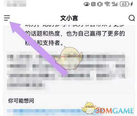 1、打(da)开(kai)文小言,点击(ji)三线图标(tubiao),如下;