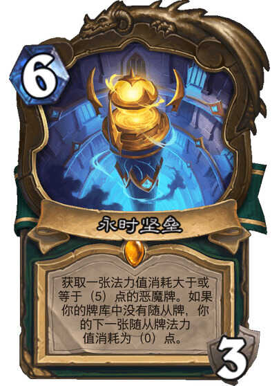 获(huo)取一张法力值消耗大于或等于(5)的恶魔牌。如果你的牌库中沒有随从牌,你的下一张随从牌法力值消耗变为(0)。
