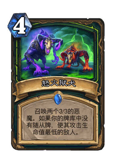 召唤两个(ge)3/3的恶魔。如果你的牌库中沒有随从牌,使其攻击生命值最低的敌方。