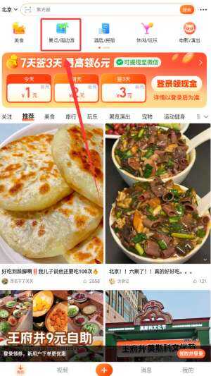 大众点评查看景点周边游方式
