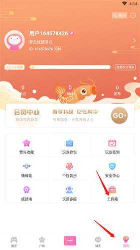 1、打(da)开(kai)软件(ruanjian),点击(dianji)底端的“莪哋”选(xuan)项(xiang),然(ran)后点击(dianji)“工具箱”选(xuan)项(xiang)。