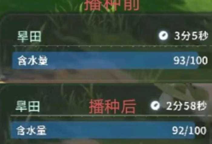 这款游戏一开始就设计了农耕的玩法,那么旱田也是最基础的一个内容,在前期需(xu)要(yao)大家来开荒地撒种子浇水,这些都是种田最基础的步骤,那么帮助自己管理理土地水分,作为非(fei)常(chang)重(zhong)要的步骤,如果後期不定时的浇水,那么含水量就會下降到零,整体的节奏是十分快的,大概三分钟就可以来消耗水量,所以大家在前期一定要格外的注重时间的效果,每一秒都会消耗3%的基础水量,那么大家后续在种植时,一定要看清楚种类。