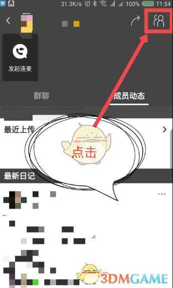 3、点(dian)击群后,在打开的学习群界面(mian),点(dian)击顶部右上角的两个人图标(biao)。